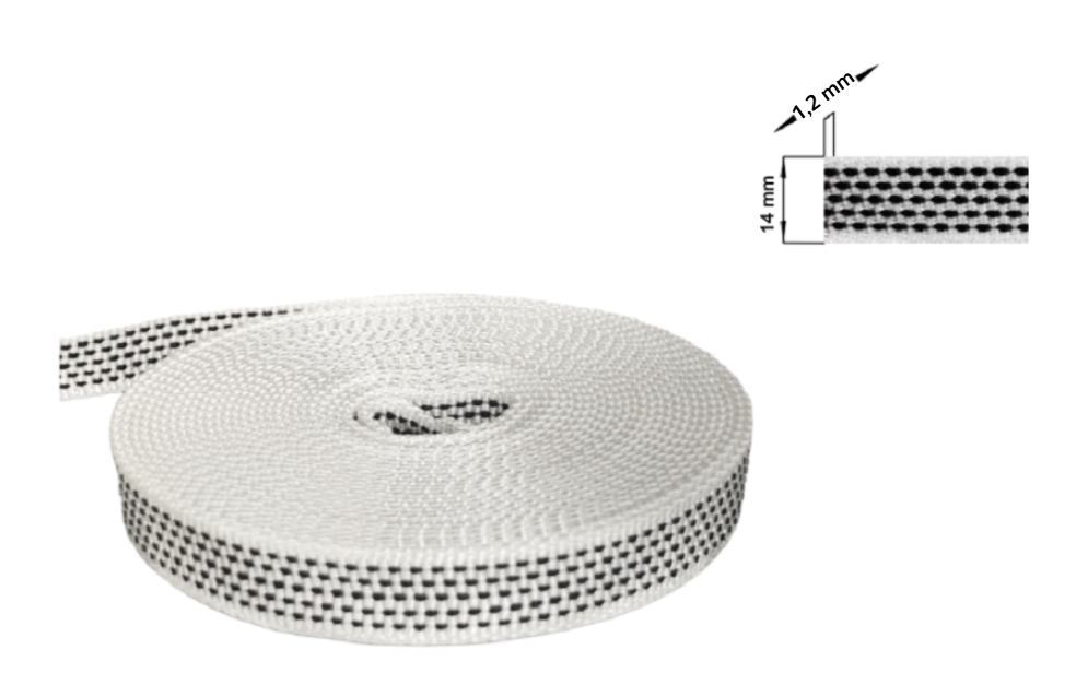 BANDG. M/KST ROL 14mm BD/PVC BS22mm Weiß
