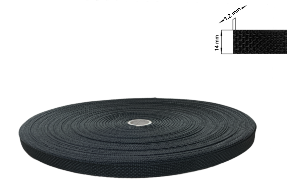 BANDG. M/KST ROL 14mm BD/PVC BS22mm Schwarz