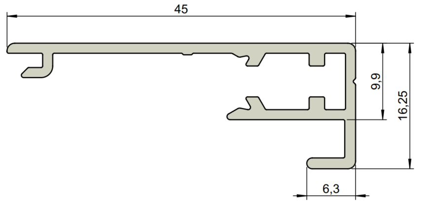 ZIJGEL. SOLIDSCR. 45x34mm AZ DICHT-R7016 gris-L= 6,00 m